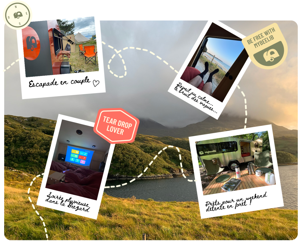 Bords de plage, forêts, montagne, camping, weekend chez des amis…Notre mini caravane 2 places devient le point commun de vos souvenirs de vie.
